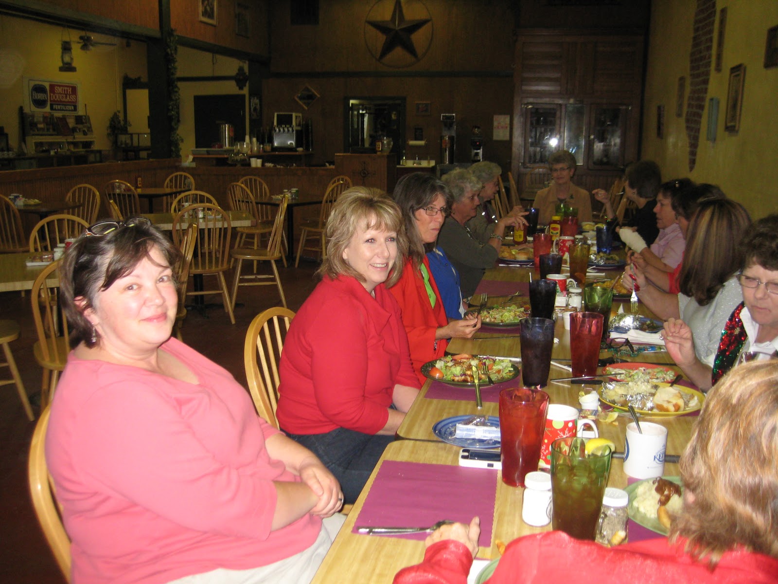 Of course, we first had to eat dinner! We had great food at our local Stagecoach Restaurant. Keep your eyes on Shirley, she is a gift stealer! |